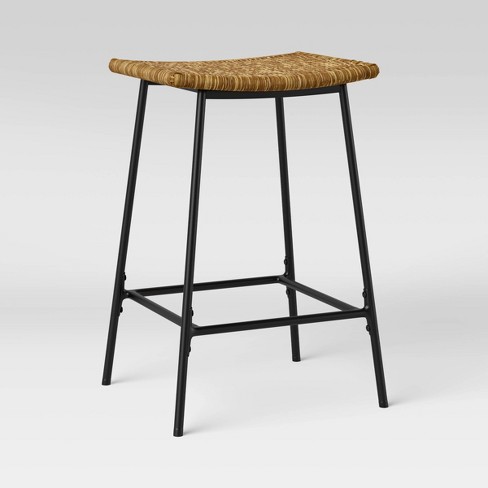 Latta Faux Seagrass Counter Height Barstool With Metal Base Black Natural Threshold Target
